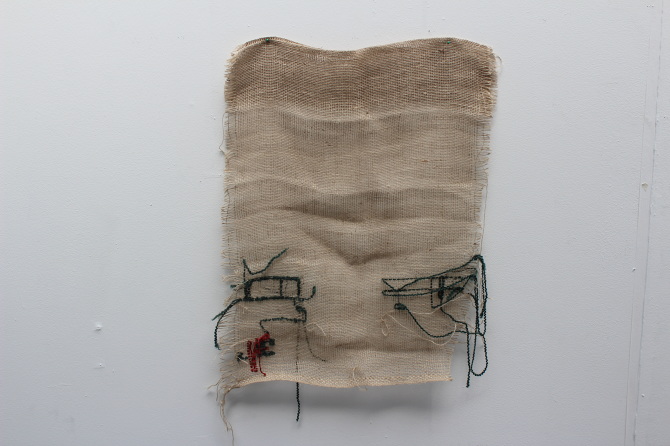 Installation view of text and weaving shown at Despina Art Residency, Rio de Janeiro. 2017