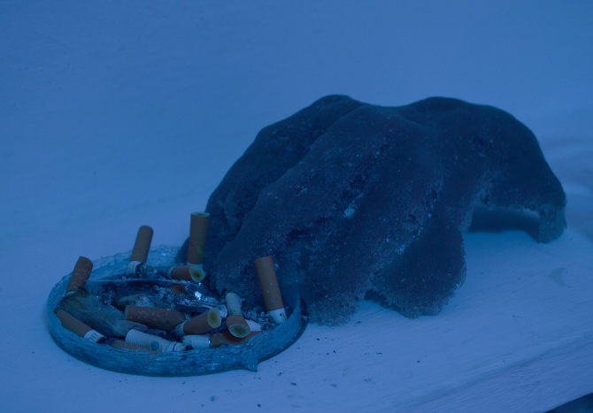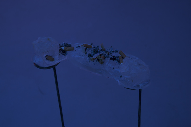 Group exihibition Dimora Artica Gallery, Milan, part of MiArt Pâte de verre glass, wax, sleel, glue,blue pigment